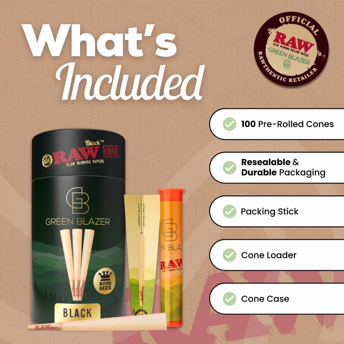 Green Blazer’s RAW BLACK series is considered the cream of the crop when it comes to pre rolled cones. They are double pressed so they are extra fine - yet they burn slow. They have no chlorine or dyes and are 100% unrefined. When you smoke RAW BLACK series, you can count on smoking one of the best pre rolled cones on the market.