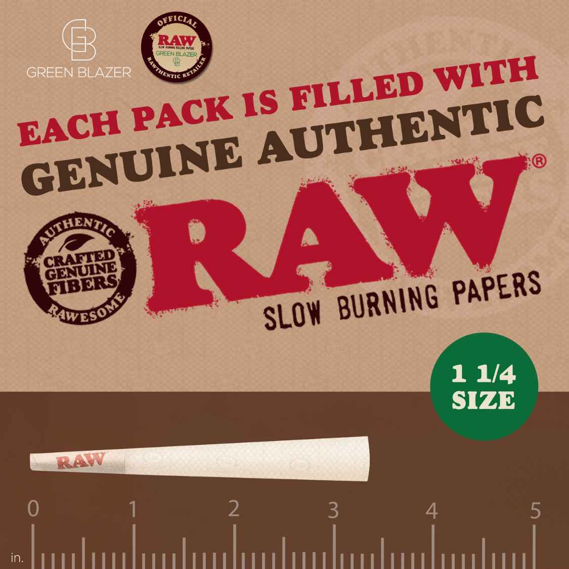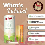 RAW Cones 1 ¼ Size Organic: Pre Rolled Rolling Papers with Filter Tips - Rawthentic, All Natural, Vegan - Includes Green Blazer Tube