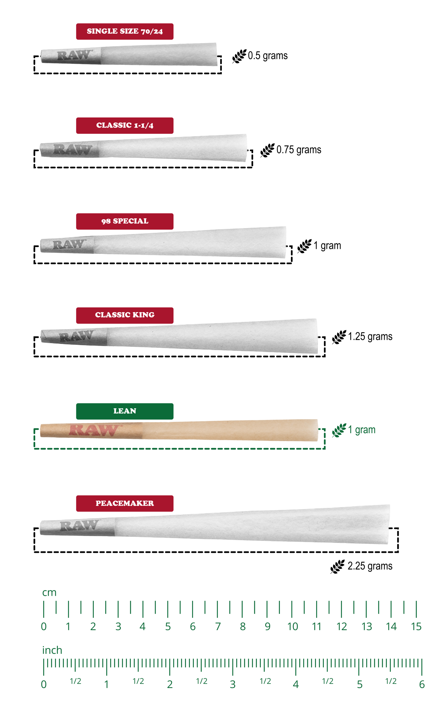 RAW's Classic Lean preroll cones are unique: They're designed to provide a different flavor by reducing the surface area of the burn (the ember). We have a small but dedicated following of Blazers that swear that this is the ultimate smoking experience. These pre rolled cones are the same length as the Classic King size, but much leaner. They offer very long filters that keep your lips safe from burns, but also cool the smoke. RAW Lean pre rolled cones are great for solo use.